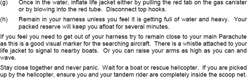 - All parachutists would benefit from gaining practical or simulated experiences of a water landing before being issued with their initial parachutists’ certificates.