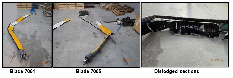 - The second main rotor blade was complete and displayed no scrape marks. However, there was significant rearward bending of the blade at three locations along its length.