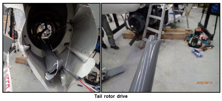- The damage to the main rotor showed that it was likely to have stopped rotating just after this strike. This sudden stoppage of the main rotor and transmission almost certainly caused the torsional overload and subsequent failure of the tail rotor drive shaft. The evidence of low rotor RPM light illumination was also consistent with this sudden reduction in main rotor speed.