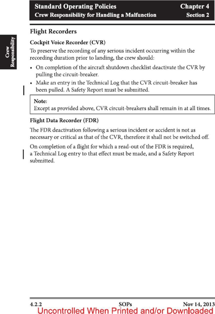 Appendix 3. Air Nelson Standard Operating Procedures Extract – Flight Recorders and TCAS