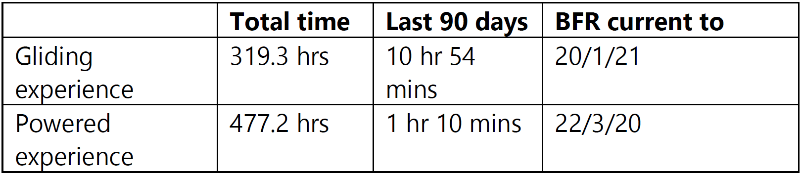 - The instructor had started training to be an instructor with the club towards the end of 2015 and had gained a ‘C’ Category instructor rating on 20 February 2018. They had been upgraded to a ‘B’ Category instructor rating by the club’s instructor trainer on 8 March 2019 and their gliding Biennial Flight Review (BFR) was current at the time of the accident (see Table 1 below).
