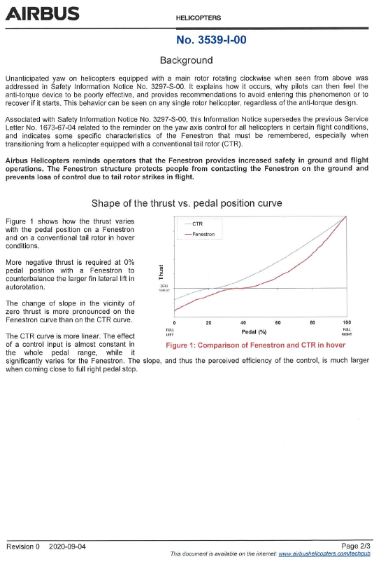 - To support pilot training on the Cabri G2, the manufacturer had produced a range of training materials on flying with Fenestron-equipped helicopters. The material noted that the Fenestron on the Cabri G2 was very powerful but behaved differently from a conventional tail rotor. Pilots were told to remember: