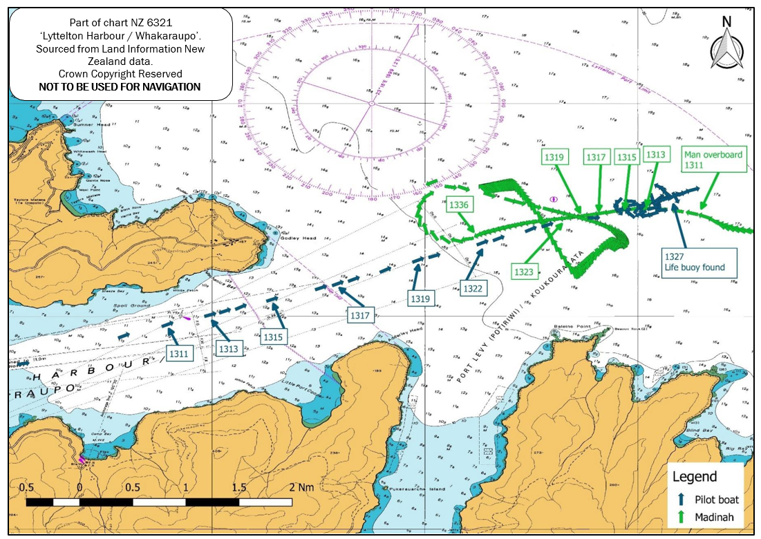 Containership Madinah, loss of person overboard, Lyttelton Harbour entrance, 2 July 2015