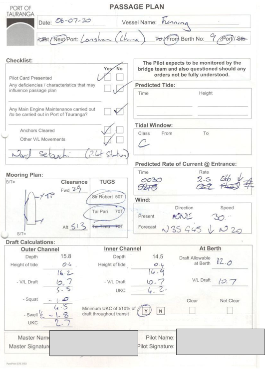 Appendix 2. Port of Tauranga passage plan