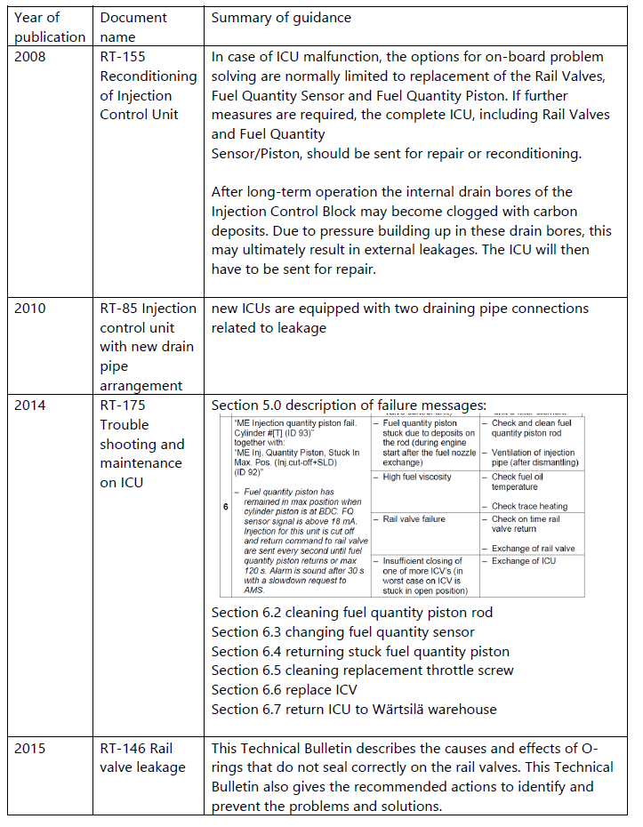 Appendix 3. Summary of Wärtsilä documents providing guidance on ICU maintenance that were available to the Commission