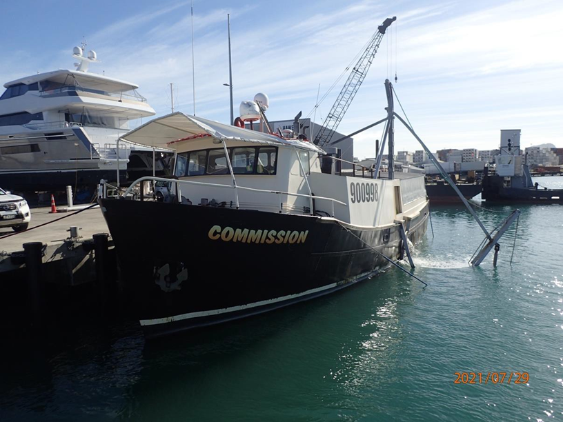 - On 29 July 2021, a team of three investigators travelled to Tauranga to conduct the site investigation at the F.V. Commission and interviewed all of the people on board at the time of the collision, as well as the vessel’s owner.