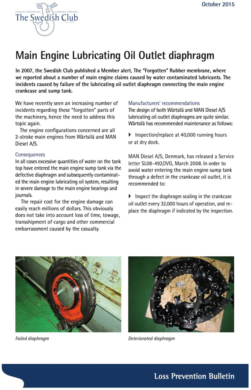 The Swedish Club. (October 2015). Main Engine Lubricating Oil Outlet diaphragm. Retrieved from https://www.swedishclub.com/uploads/2023/12/Defective-Maine-Engine-diaphragm_The-Swedish-Club.pdf