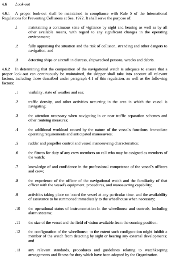 - poor watchkeeping standards, including preoccupation with non-watchkeeping duties