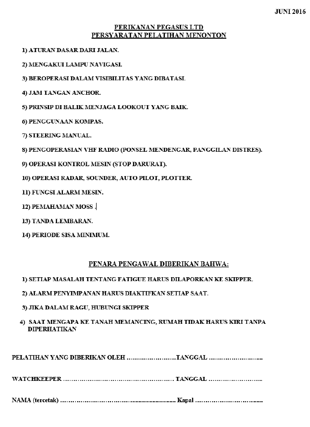 Pegasus Fishing also refers to its comments on relevant parts of the draft report as to its safety management system.