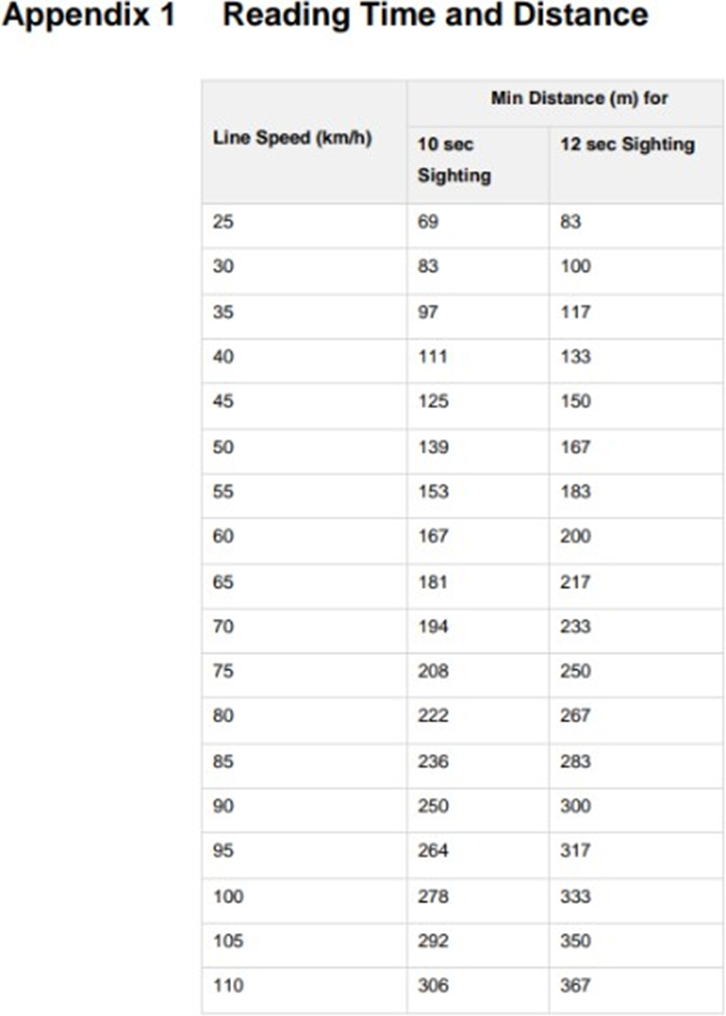 Appendix 2. KiwiRail standard S-ST-SG 2124 Signal Sighting, Appendix 1