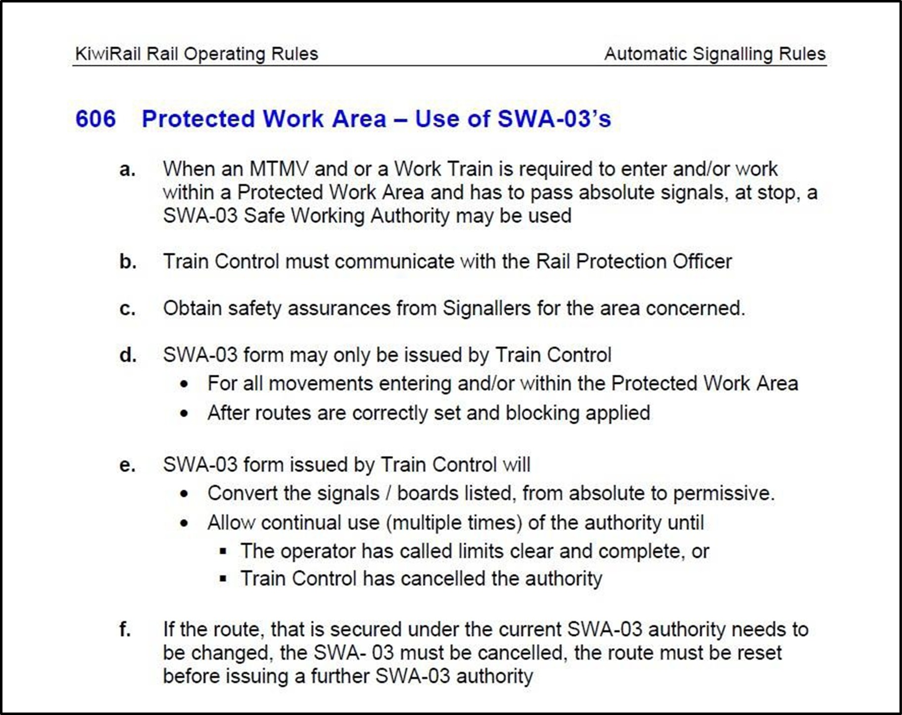 Appendix 2. KiwiRail Automatic Signalling Rule 606