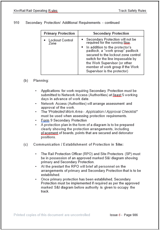 - Although this requirement was not completed, RPO1 assigned the work group a Site Protector (SP), who was responsible for locking the work group onto and off the site in accordance with KiwiRail procedures.