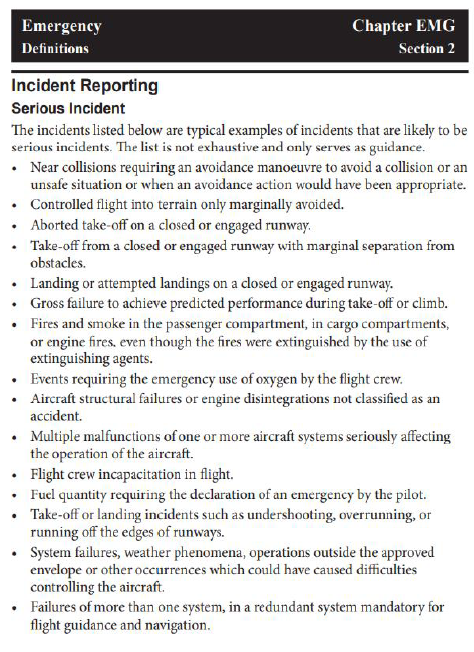 - Establishing criteria through recurrent messaging and training for flight crew on the definitions of what constitutes a serious incident is an important and continuous safety function for airlines. This will ensure that reporting and securing of safety data (such as from on-board recorders) occurs for all serious incidents and lessons are learned to avoid repeat occurrences.
