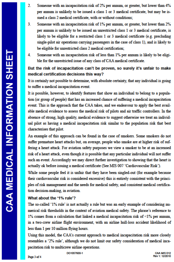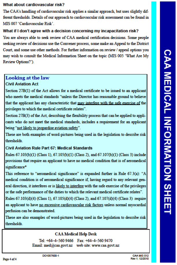 Appendix 1. Civil Aviation Authority Medical Information Sheet – Medical Incapacitation (CAA MIS 012)