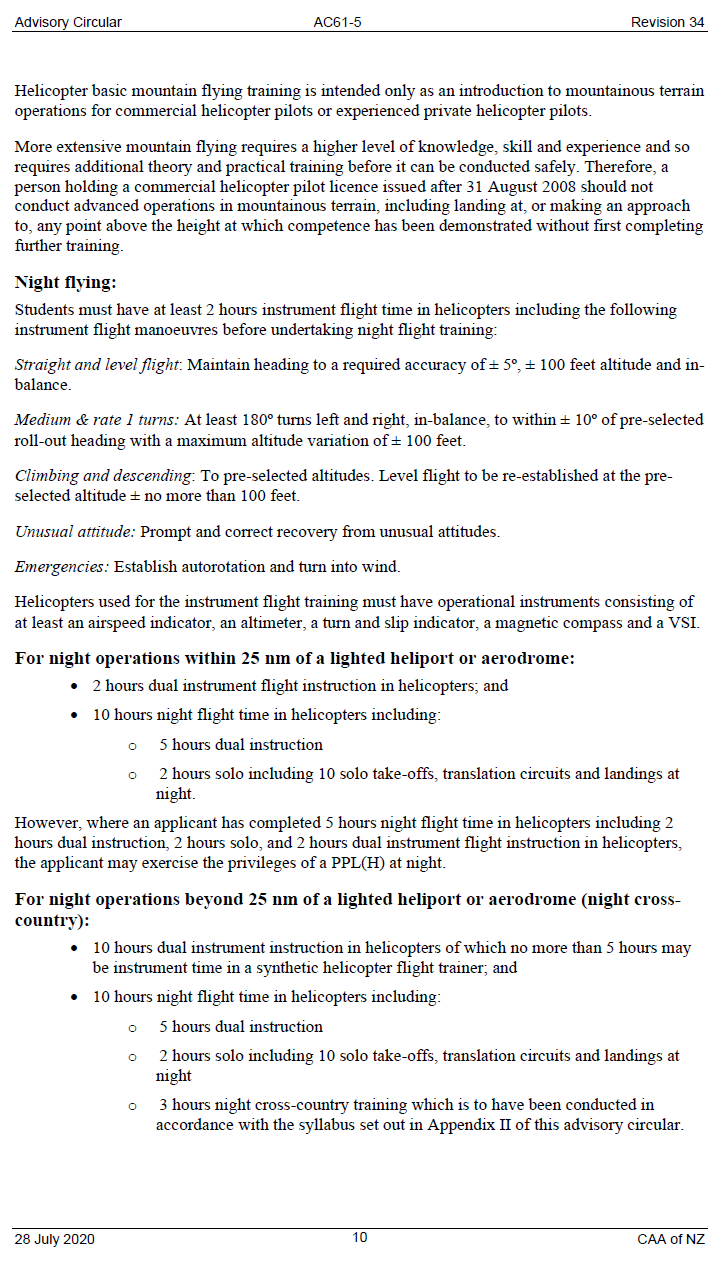 o Night flying – including clarification and training guidance of Night VFR operations.