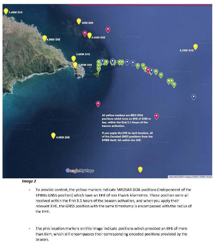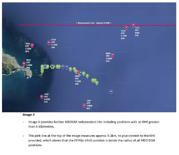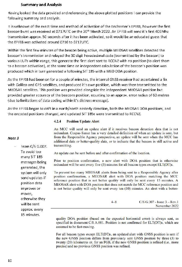 The Enchanter Capsize, description of EPIRB transmissions – 20 March 2022 (all times in UTC)