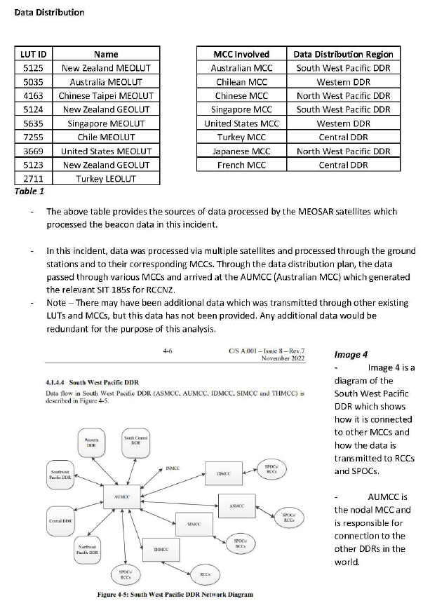 - At 1319 the body of a fourth passenger was located and recovered, leaving one passenger still missing. By 1527 the RCC had realised that air assets were not following their assigned search patterns. HMNZS Taupo had directed all assets to search another area, based on their own drift-modelling calculations. After some discussion with HMNZS Taupo, the RCC took back control of the search area.