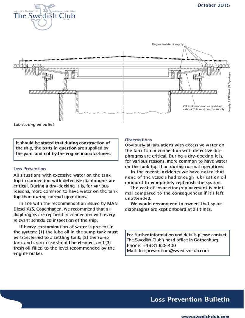 The Swedish Club. (October 2015). Main Engine Lubricating Oil Outlet diaphragm. Retrieved from https://www.swedishclub.com/uploads/2023/12/Defective-Maine-Engine-diaphragm_The-Swedish-Club.pdf