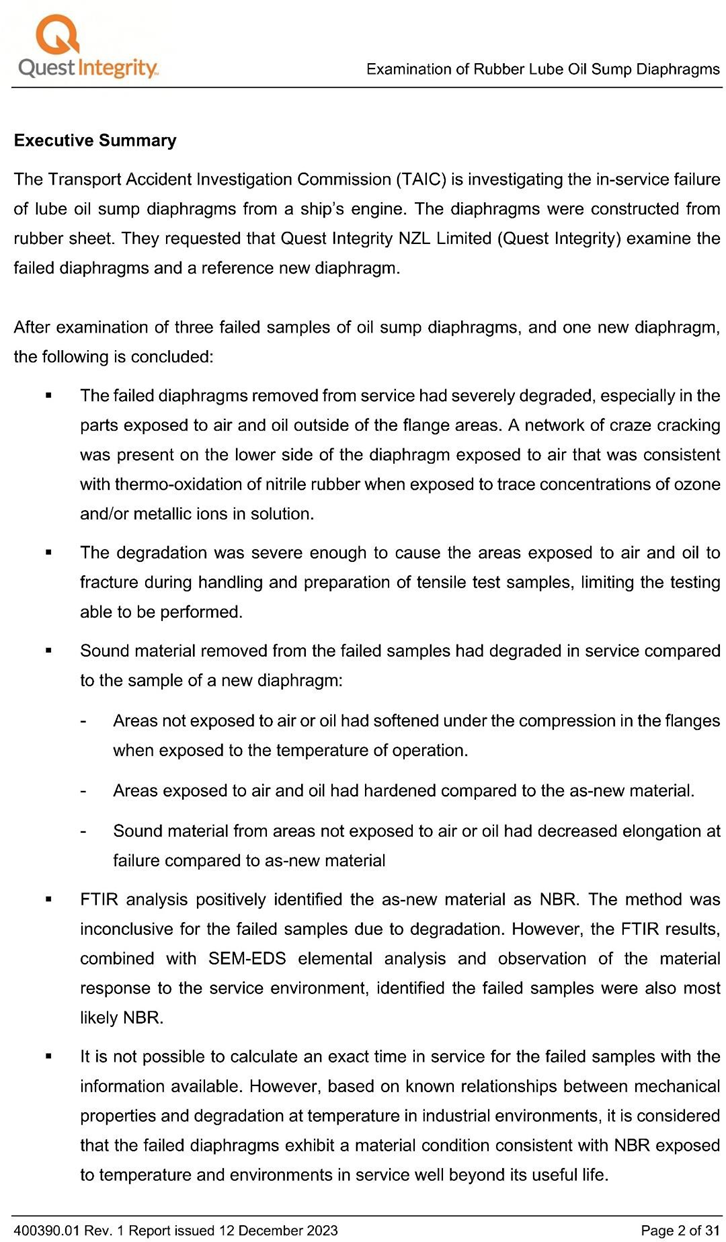 Appendix 3. Executive Summary and Conclusions of the Quest Integrity report