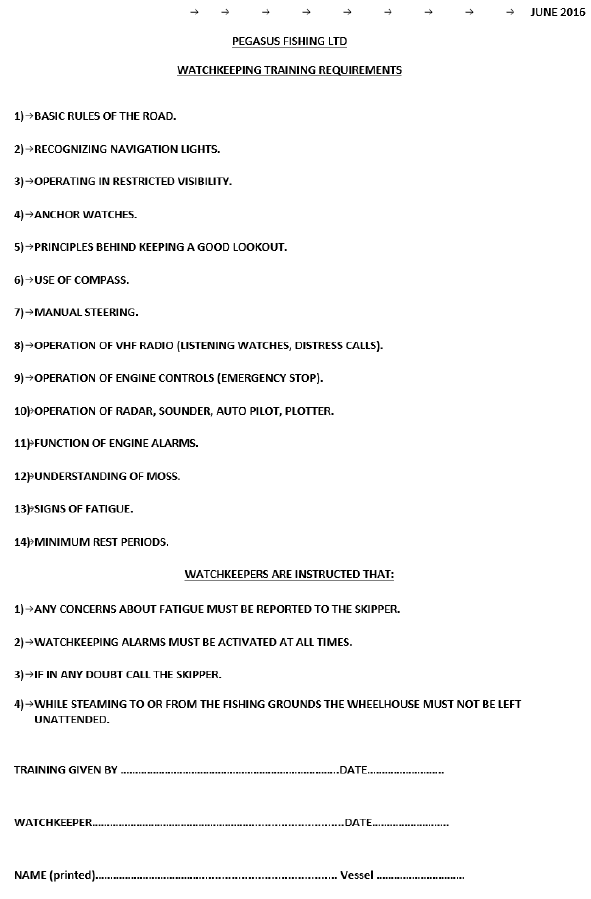 Pegasus Fishing also refers to its comments on relevant parts of the draft report as to its safety management system.
