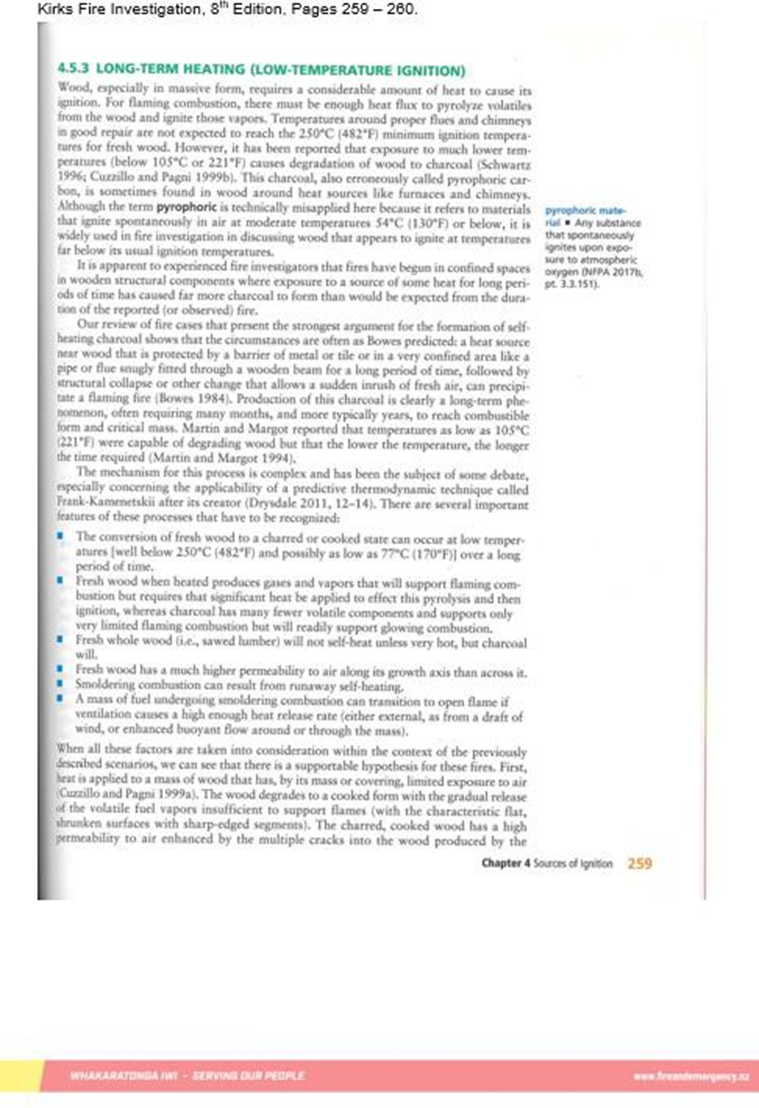 - In fire investigation terms, pyrophoric action refers to fires that have started in confined spaces, where long-term exposure to a source of heat causes carbon deposits such as charcoal and soot to form. A sudden influx of air, arising from degradation of the surrounding area, could cause these carbon deposits to ignite (Icove D.J. & Haynes G.A. (2017). Kirks Fire Investigation, 8th edition. Referenced by independent fire investigator’s report (see Appendix 3)).