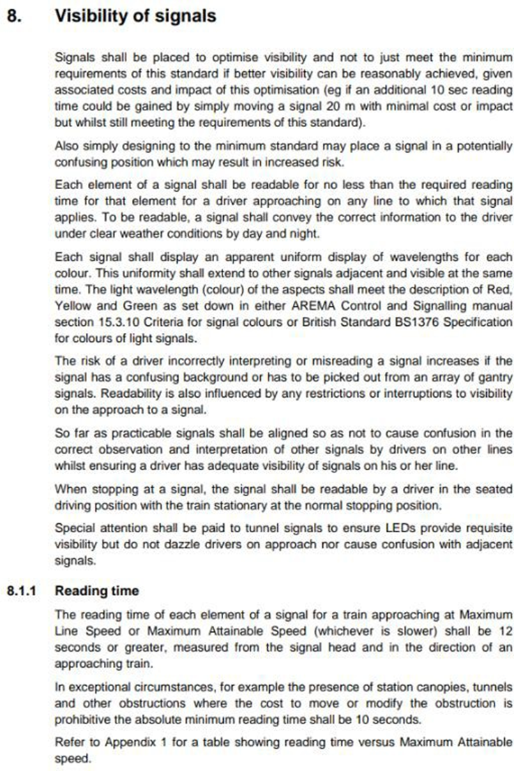 Appendix 3. KiwiRail standard S-ST-SG 2124 Signal Sighting, Section 8