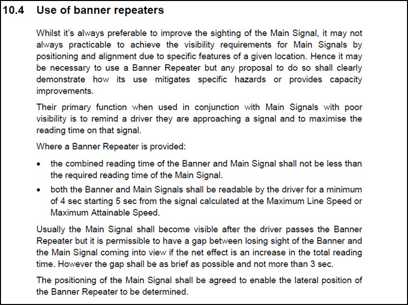 - The timely detection and accurate perception of a signal’s aspect is facilitated through the correct positioning of signals, having regard to the track alignment, topography and infrastructure. Applying the maximum signal sighting times provides an assurance that the appropriate signals will be identified in sufficient time for the LE to take the appropriate actions in response to the signals aspect.