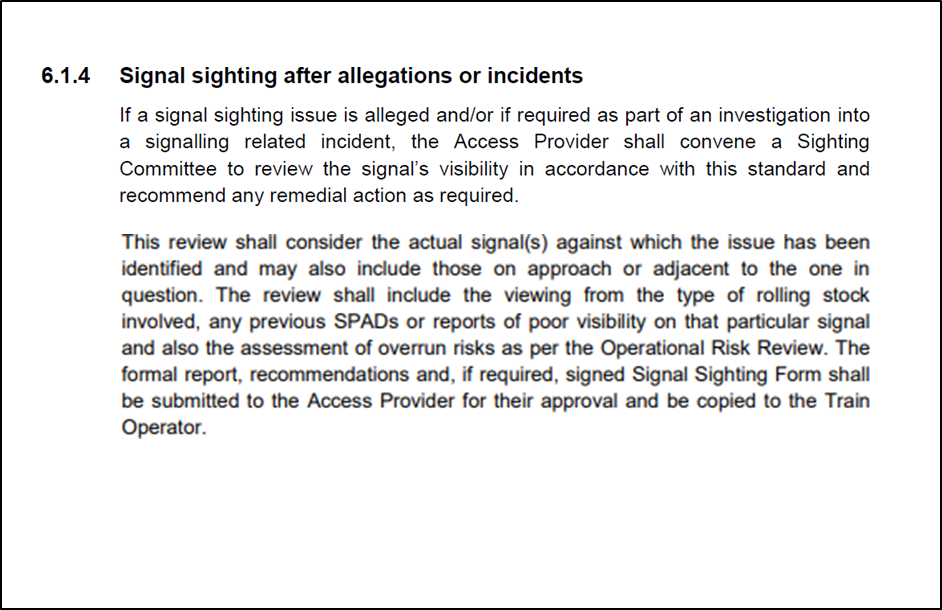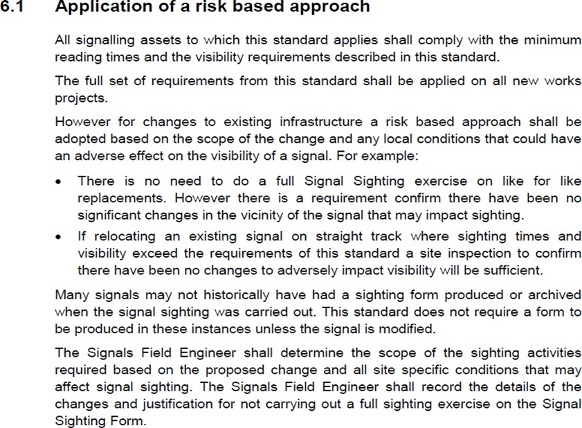 The signals sighting standard S-ST-SG-2124 and associated task instruction S-TI-SG-2203, which were produced in 2017 to update and improve the requirements for signals sighting. This document outlines the requirements for new works and modifications, maintenance and post incident.