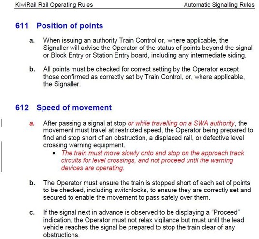 Appendix 3. KiwiRail Automatic Signalling Rule 612