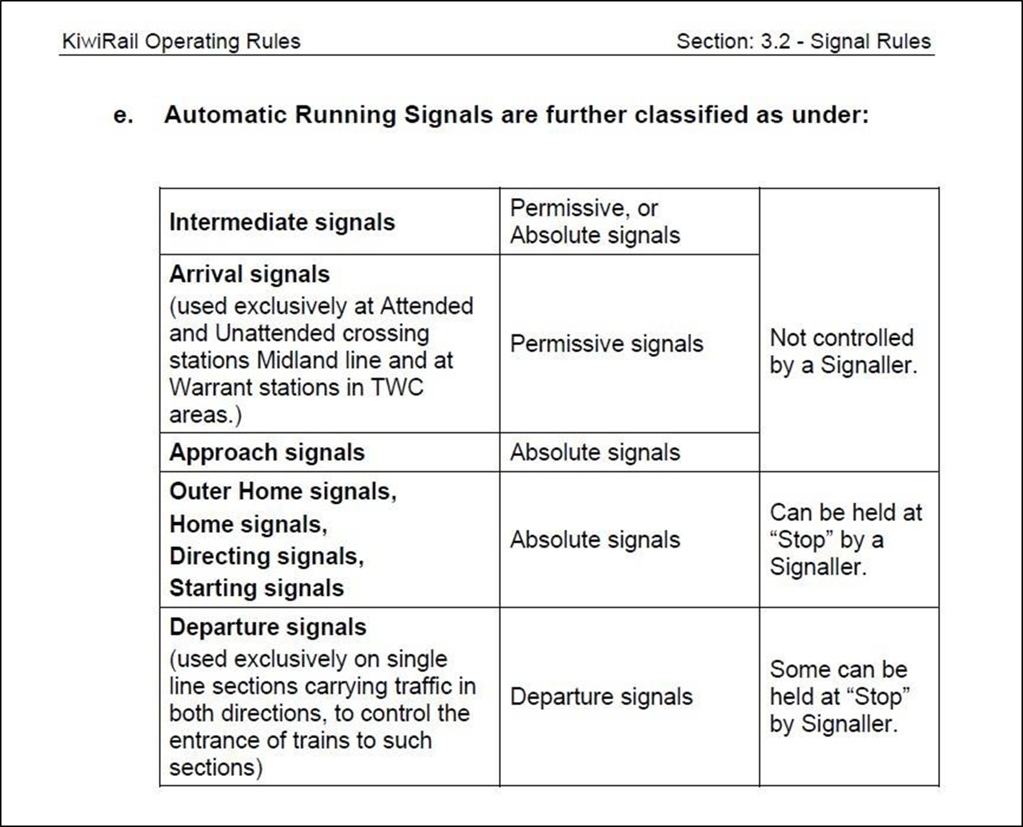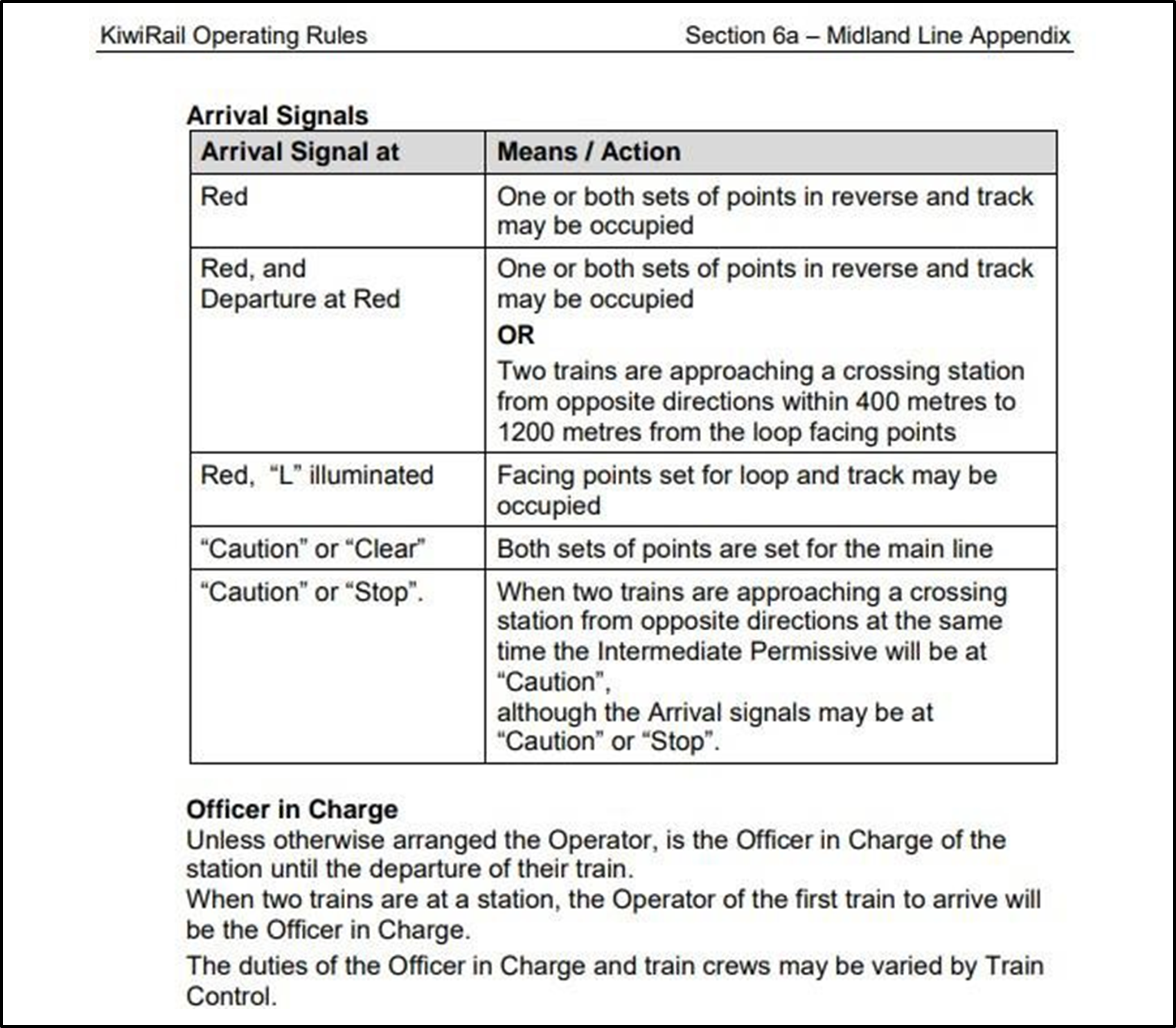 - When facing a red signal, KiwiRail’s Rail Operating Rules and Procedures prescribe what action LEs should take dependent on whether they are crossing another train and whether they are taking their own train into the loop or the main line (see appendices 1 and 2).