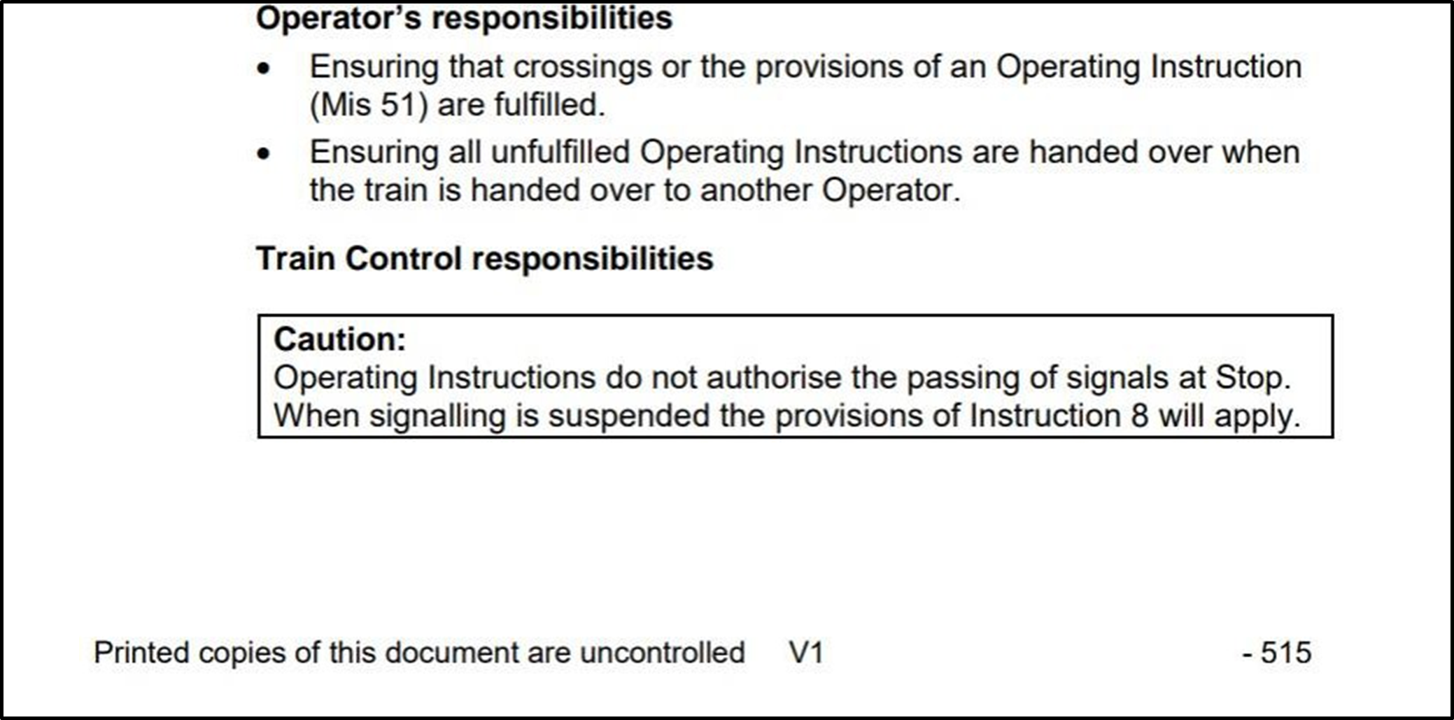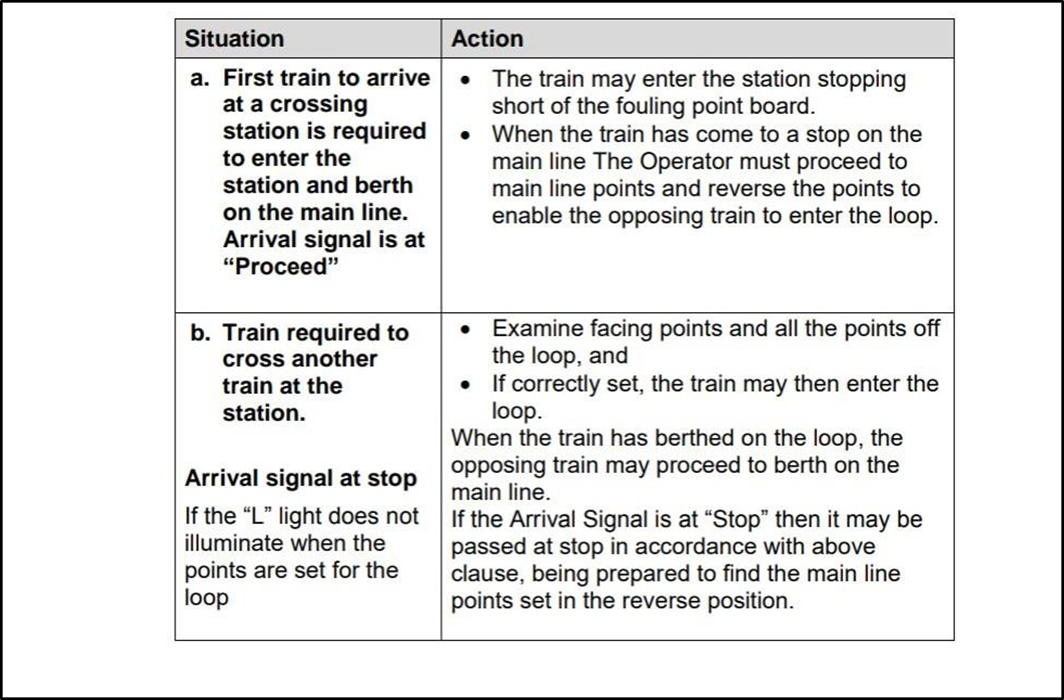 - Being in possession of the Mis 51 was not an authority to pass signals showing a red aspect. LEs still had to comply with signals in accordance with the prescribed SLAS rules of what action to take at crossing stations (see Appendix 1).