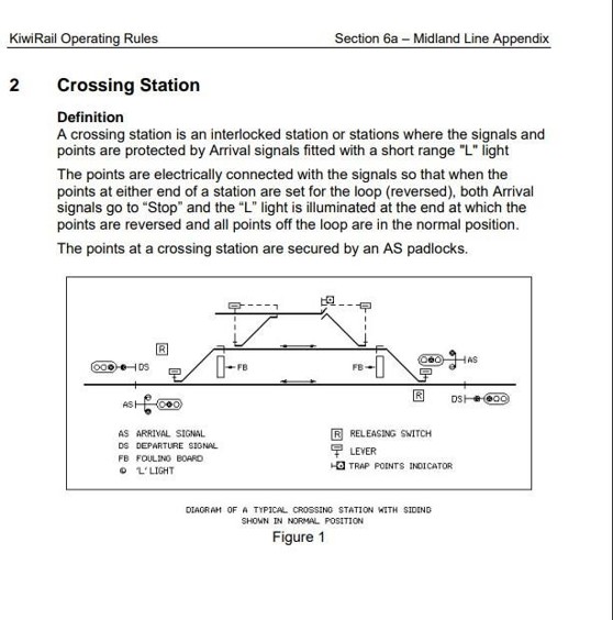 - At the time of the incident, the procedure to be followed by LEs at SLAS crossing stations was set out in KiwiRail’s Rail Operating Rules and Procedures (RORP) Section 6a – Midland Line Appendix (see Appendix 1). For Cora Lynn, the RORP required the LE to stop their train before signal 10244 for at least 10 seconds and visually inspect the west end points to ensure they were correctly set before entering the main line.